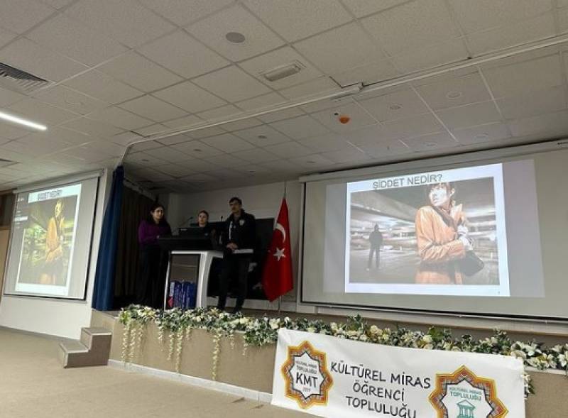 Kültürel Miras Öğrenci Topluluğumuzun “TOPLULUK İLE POLİS EL ELE: KADES UYGULAMASI EĞİTİMİ” adlı programımızda, şiddet ve istismar gibi kötü eylemlere maruz kalan kadın ve çocukların bu gibi olaylar karşısında nasıl davranmaları gerektiğini ve KADES uygulamasının kullanımı ayrıca önemi hakkında bizlere bilgi veren Hendek İlçe Emniyet Müdürlüğüne teşekkür ederiz.